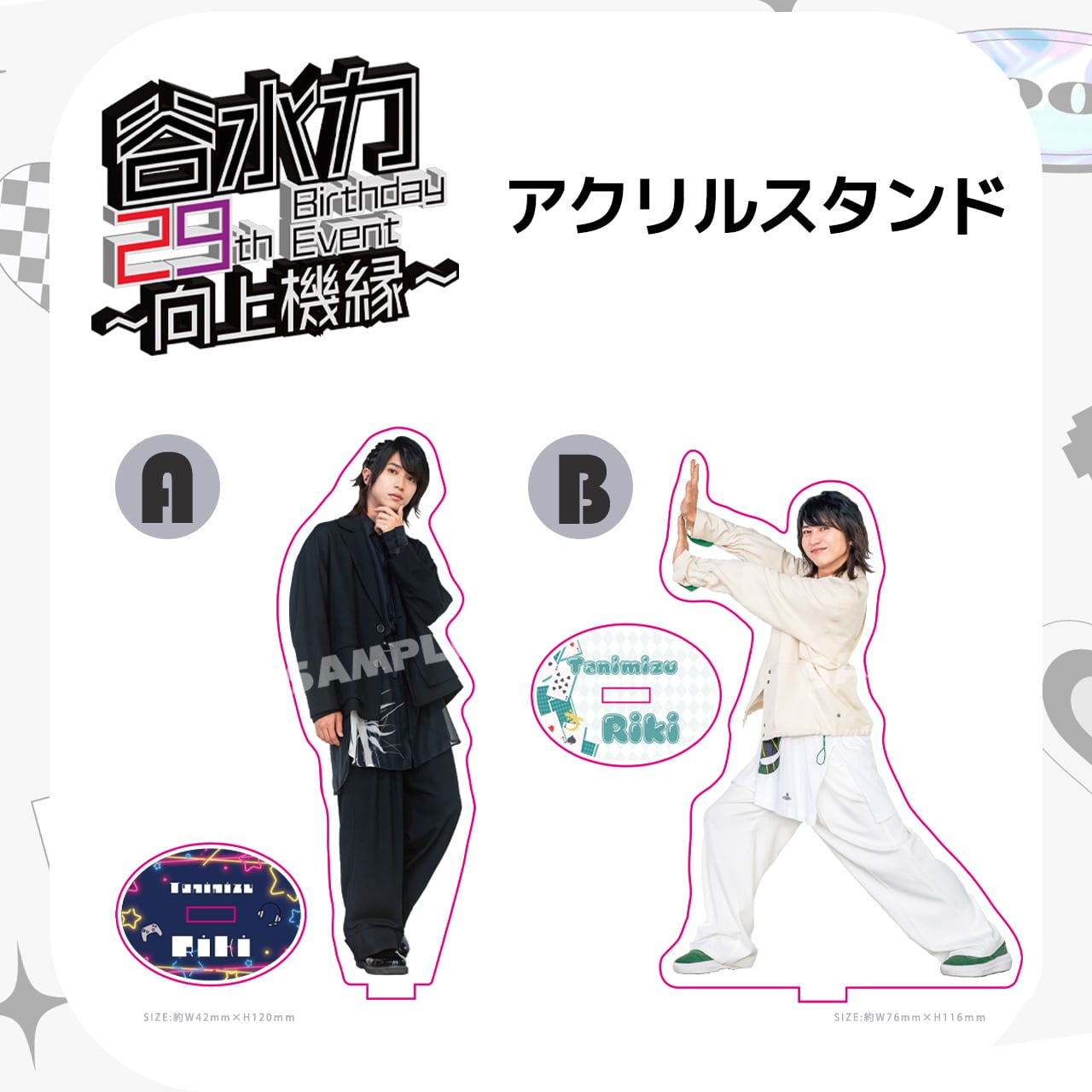 2025年11月1日に行われた「谷水力 29th Birthday Event ~向上機縁~」物販のアクリルスタンドです。